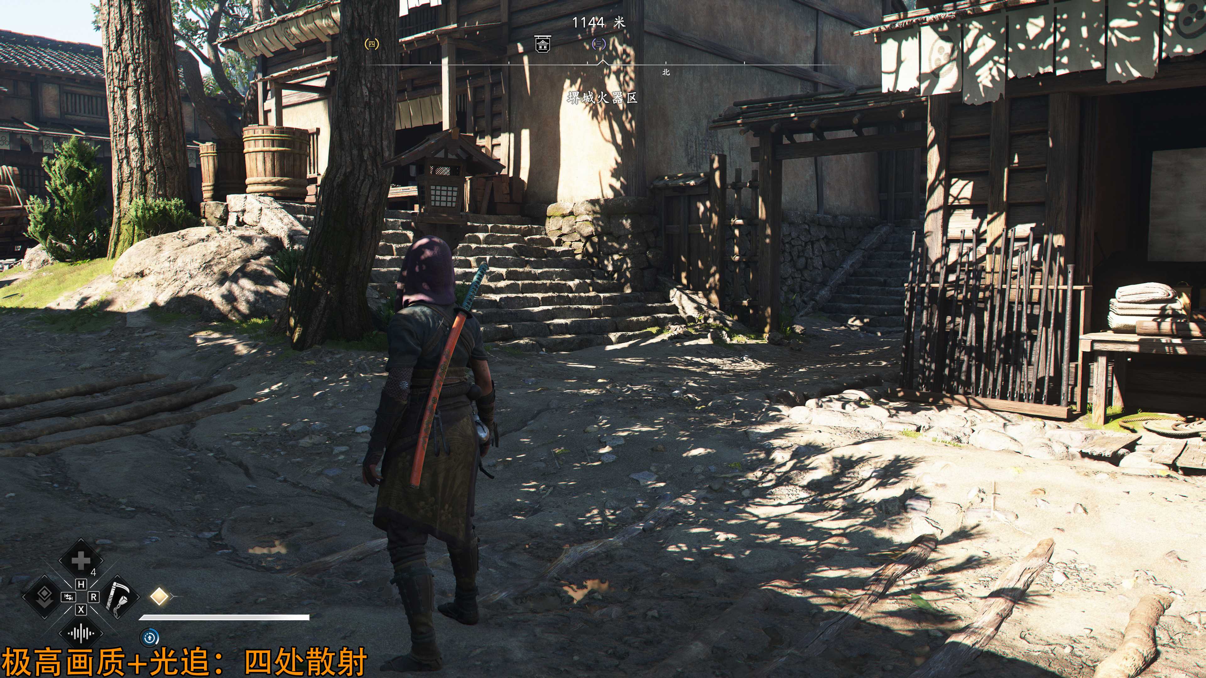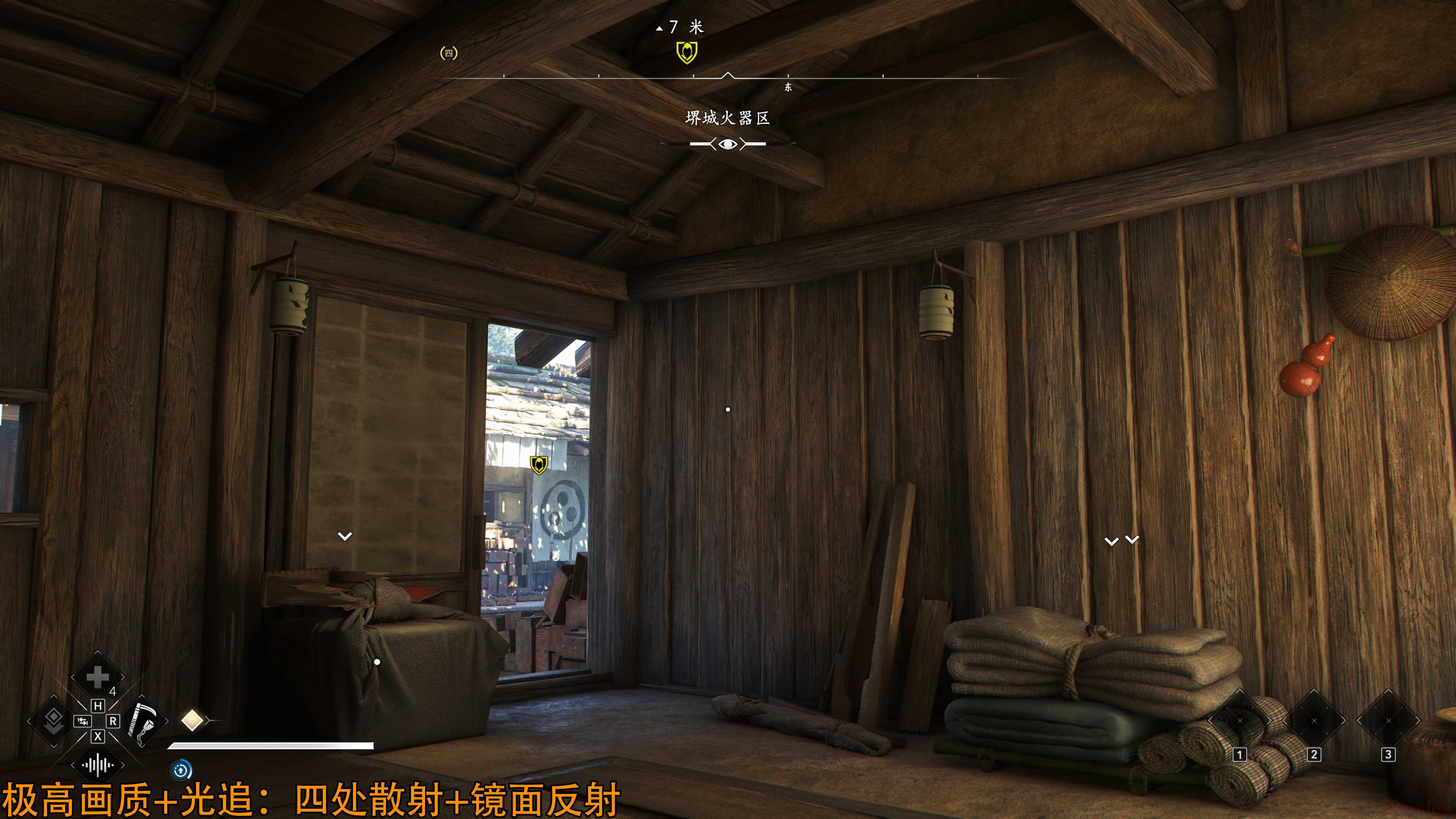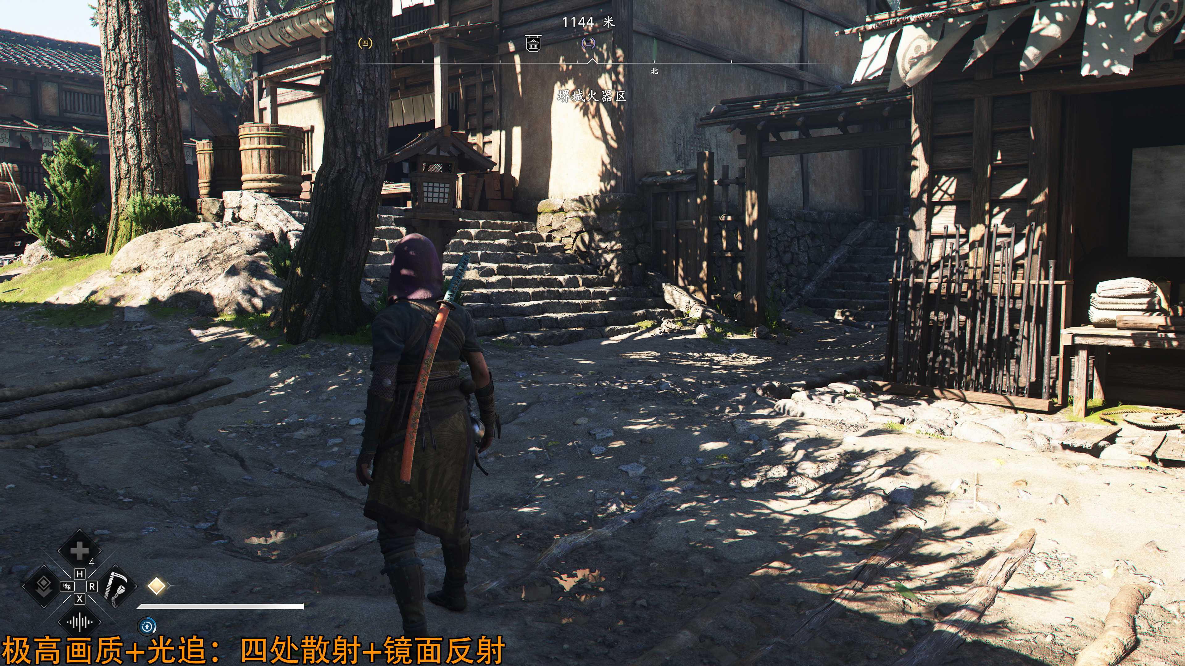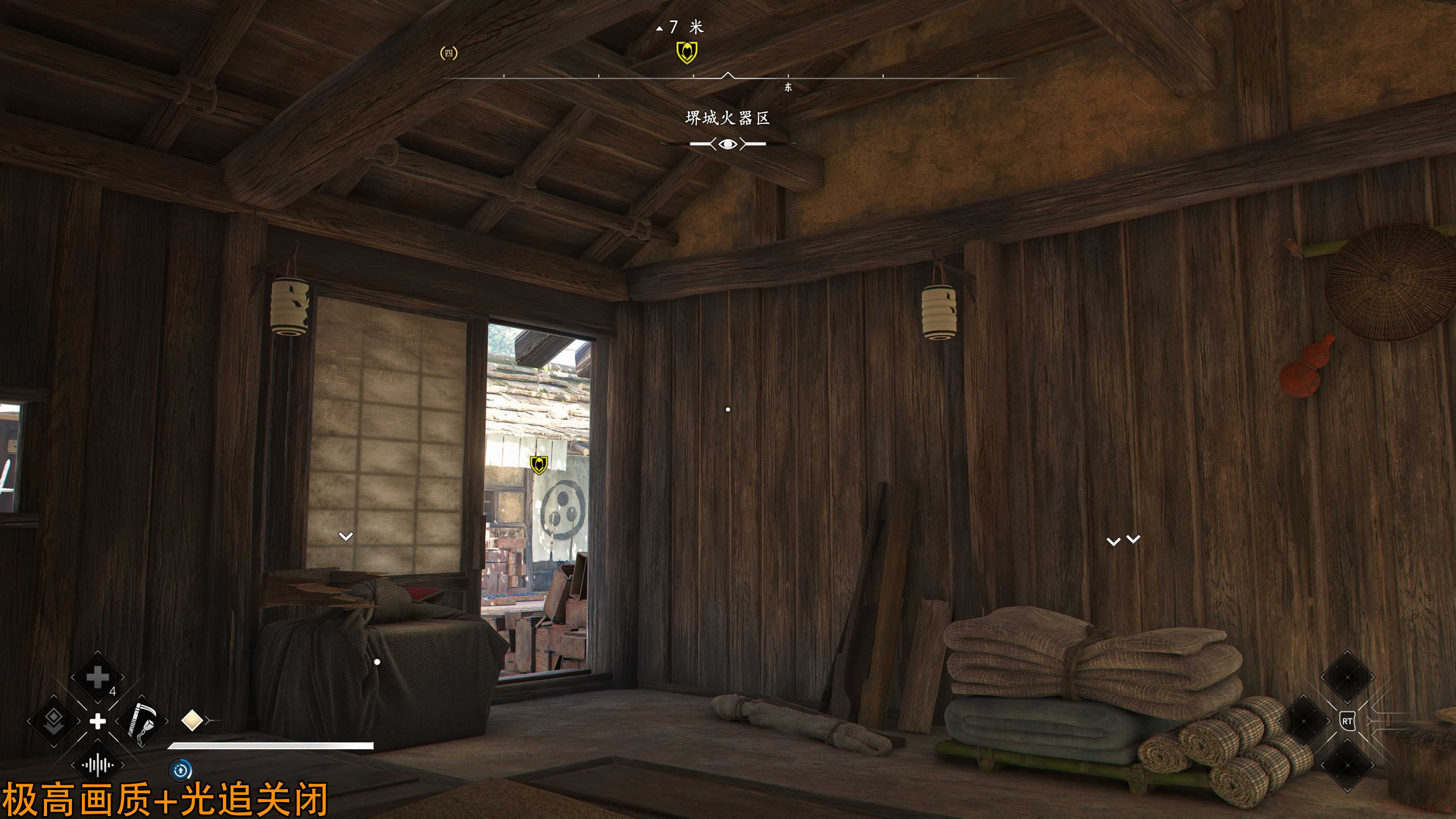 室内场景则是更好能明显突出光追:四处散射的实际作用,除了给房子内整体赋予更为真实的阴影以外,还能把那些不应该出现阴影的地方纠正(比如障子门确实是透光的,但光线直射明明在对面屋子,光栅设置却把它透亮了)