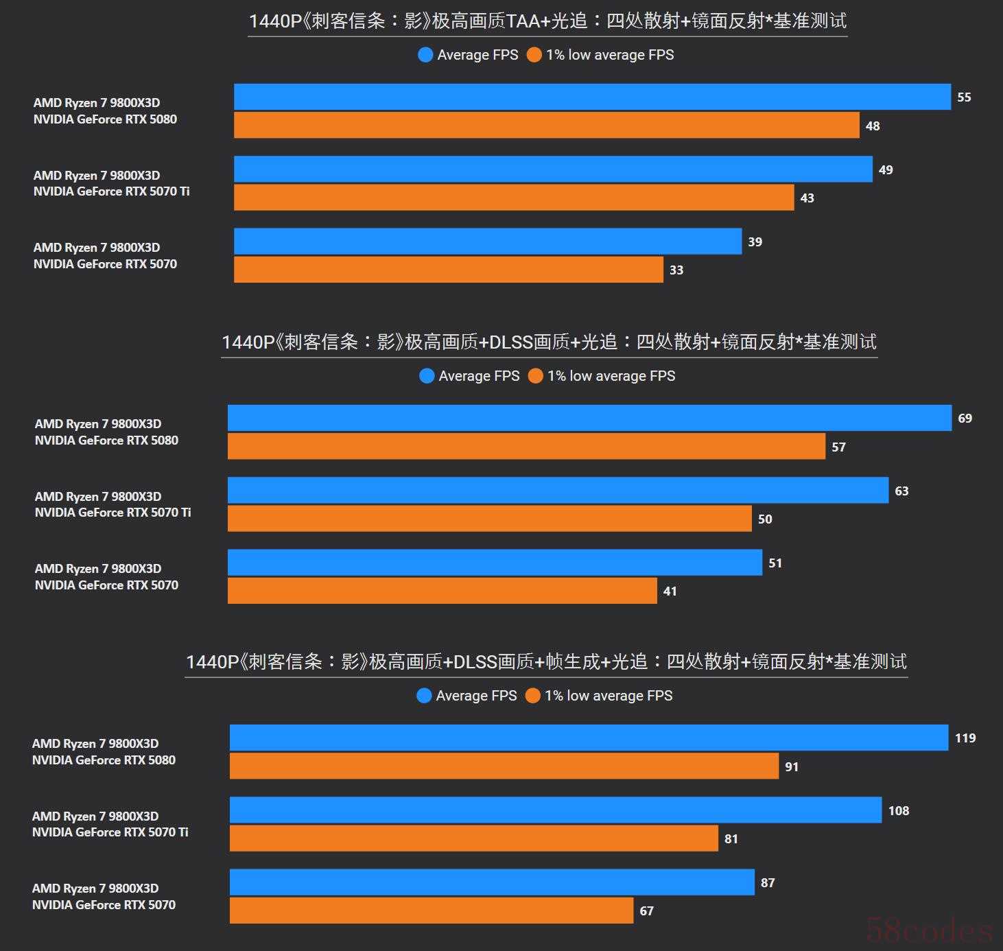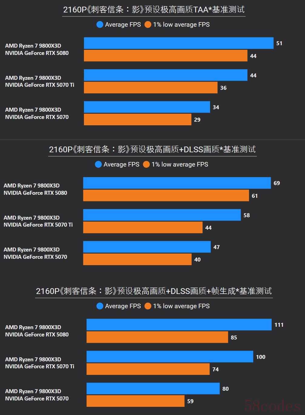 1. "RTX 5080 / 5080 Super:" 在《刺客信条:影》中通常能轻松达到 4K 分辨率下的高画质