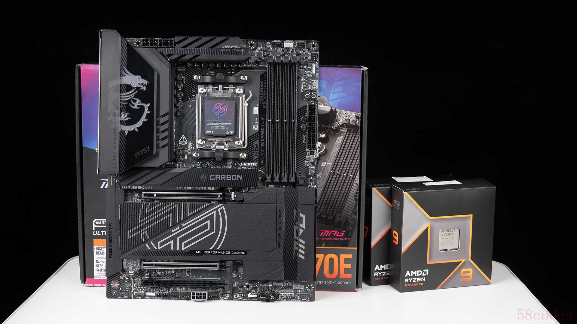 搭配测试CPU是锐龙7 9800X3D,采用第二代3D V-Cache核心技术,大部分游戏表现都能和锐龙9 9950X3D打个平手,足以最大程度降低来自CPU的性能瓶颈,搭配测试主板是微星MPG X870E CARBON WIFI暗黑。