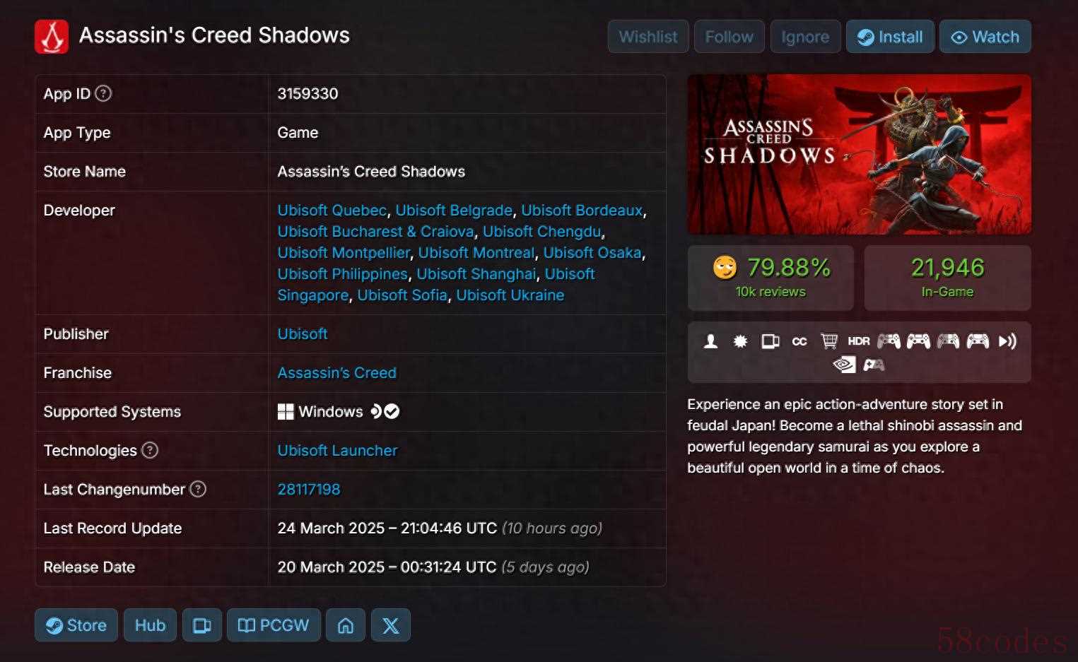 《刺客信条:影》目前游戏销量还是不错的,AnvilNext引擎带来全新的画面升级,对于显卡性能要求并不低,对于RTX 3060 12GB这种老卡,1080P是建议开到预设高画质,再搭配DLSS或者叠加帧生成技术才可畅玩。