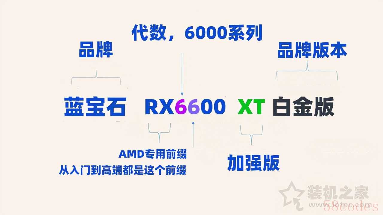 A卡的型号主要是前缀+数字组成,目前的A卡型号前缀目前都是以RX开头,其后面的数字型号则是越高性能越强!