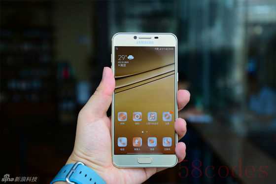 三星Galaxy C5是三星针对中国市场推出的一款中端旗舰机皇,产品设计给人最为直观的感觉就是机身很薄,三星Galaxy C5采用全金属一体设计,侧边棱线与转角弧度交融,看起来非常大方美观。机身表面采用喷砂颗粒工艺,使金属摸上去的质感更加亲近皮肤。机身厚度仅有6.7mm,并且配备枫叶金、蔷薇粉、皎洁银、烟雨灰四个配色。
