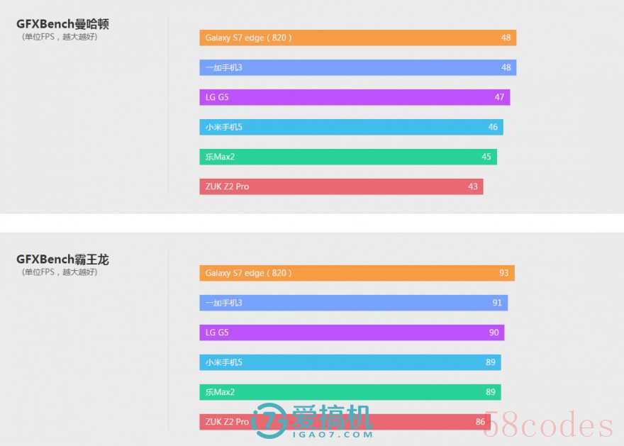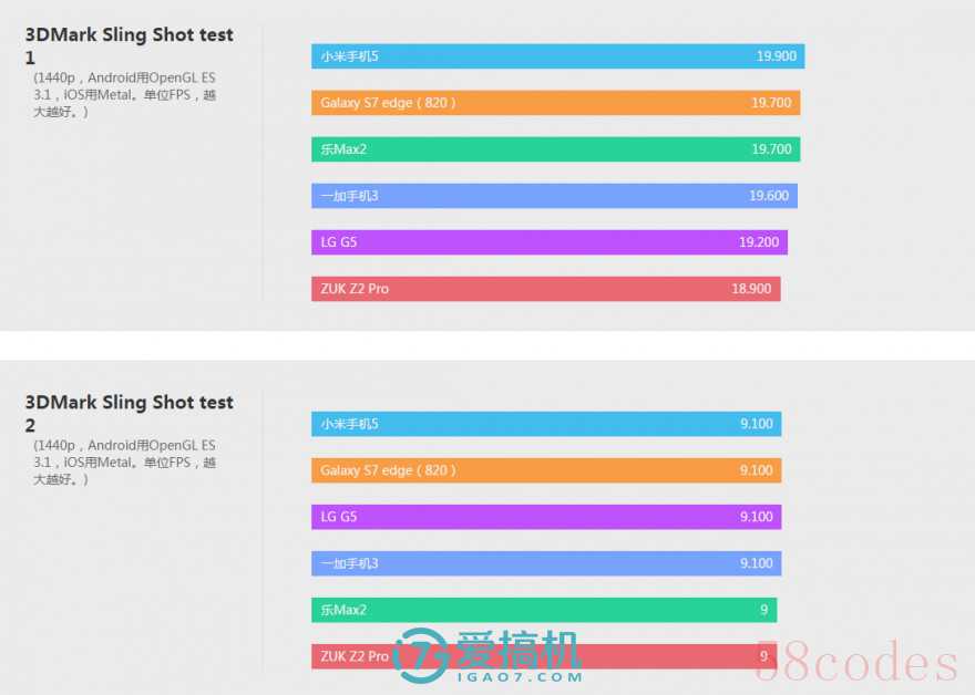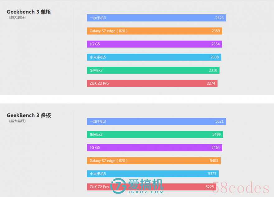 和同样都是骁龙820的S7 edge、LG G5、小米5、一加3、乐Max2进行对比。ZUK Z2 Pro对骁龙820的调教相当保守,CPU和GPU实际跑分测试几乎都是同代垫底的级别。
