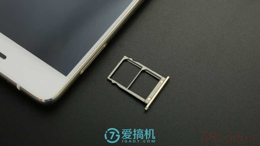 机身右侧是音量和电源键,按键手感稍微偏硬,反馈清晰。两个按键稍有虚位,但未到晃动出声的地步,做工还可以。左侧SIM卡槽支持两张nano-SIM卡,但不支持拓展。卡槽结合工整紧密,稍低于边框。