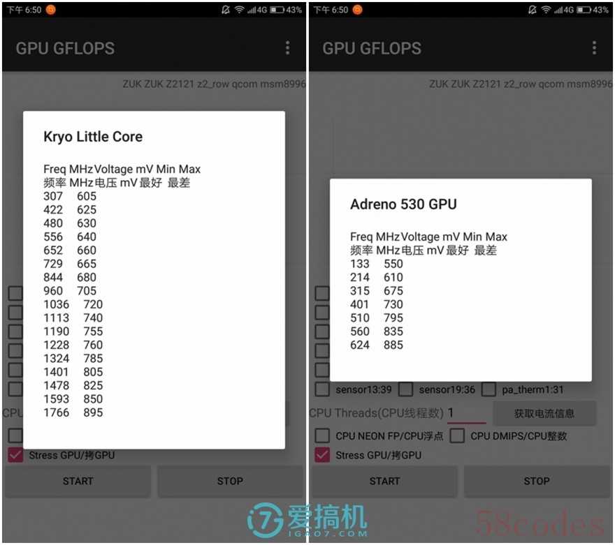 我们拿到的ZUK Z2 Pro的CPU大核体质中等(系统更新之后貌似屏蔽了体质查看,大核体质的页面闪退),小核以及GPU体质信息如上,都是常见的中等水平。