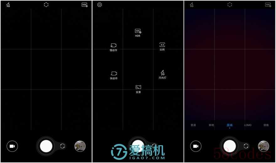 拍照app:ZUI的拍照界面进行了大幅的修改,界面比较新奇,但逻辑奇特,实用度一般,改进空间还很大。点按或取景框下滑可以唤出六角形排列的模式切换按钮,但可调项只有画面比例。画面左右滑动可以切换滤镜,但默认模式下是不显示任何提示的,隐藏得太深。