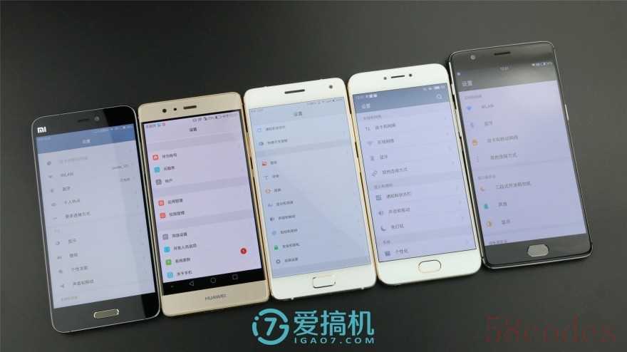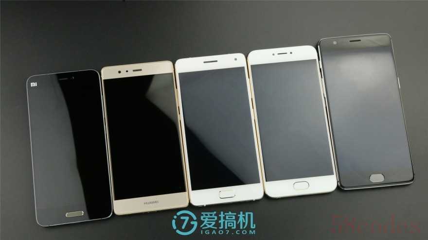 小米5、华为P9、ZUK Z2 Pro、魅族PRO 6和一加3