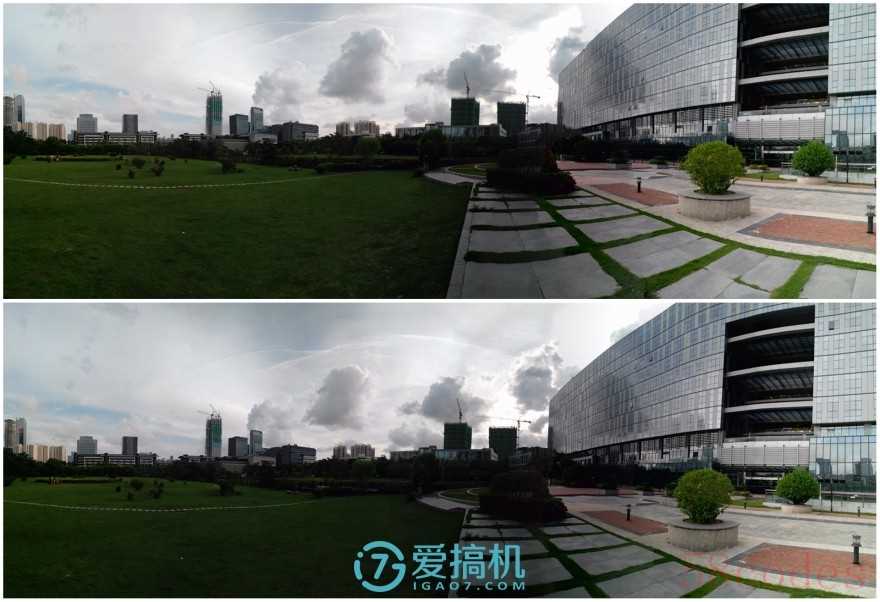 全景的角度200-220度左右,成片分辨率为11712*3968,8.49m左右。细节表现不错,但拼接痕迹以及明暗过渡都有一定的问题, 另外宽容度较低,暗部容易黑死,