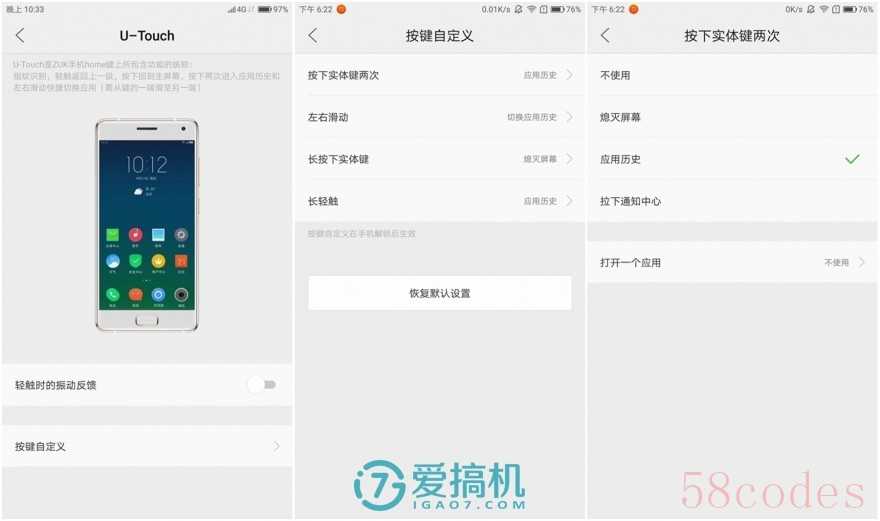 这肯定是现有产品里功能最多的home键,可以省下很多中高阶用户装手势插件和类似快捷工具的麻烦,稍微熟悉一下就能较快上手。特别赞的是左右切换应用的体验,反应及时而且过渡动画也做得很到位。