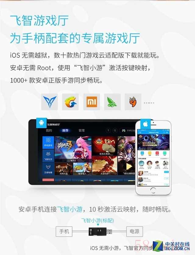 产品描述 | 飞智独创手柄按键映射技术,热门手游云端适配;搭配飞智游戏厅,玩转安卓、苹果热门手游,把手机变掌机,助你轻松超神。 |