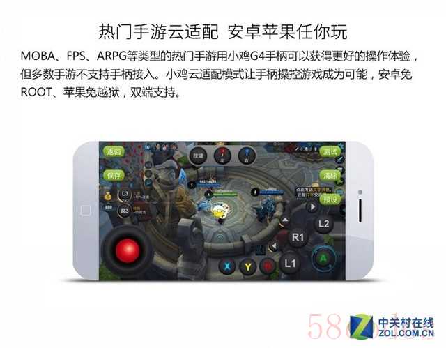 小鸡G4增强版配套的小鸡手柄精灵横扫主流手游大作,安卓系统免ROOT、iOS系统免越狱,配合小鸡模拟器可以玩里面所有的游戏。王者荣耀、球球大作战等热门游戏一个手柄打包带走。