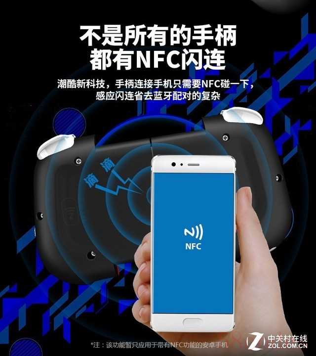 北通W1手柄内置原装进口的蓝牙4.1芯片,信号传输延迟低于0.005秒。并且在手柄配对方面加入了独特的“NFC闪连”功能,只需将有NFC功能的安卓手机,和手柄背部NFC闪连标志碰一下即可完成配对。
