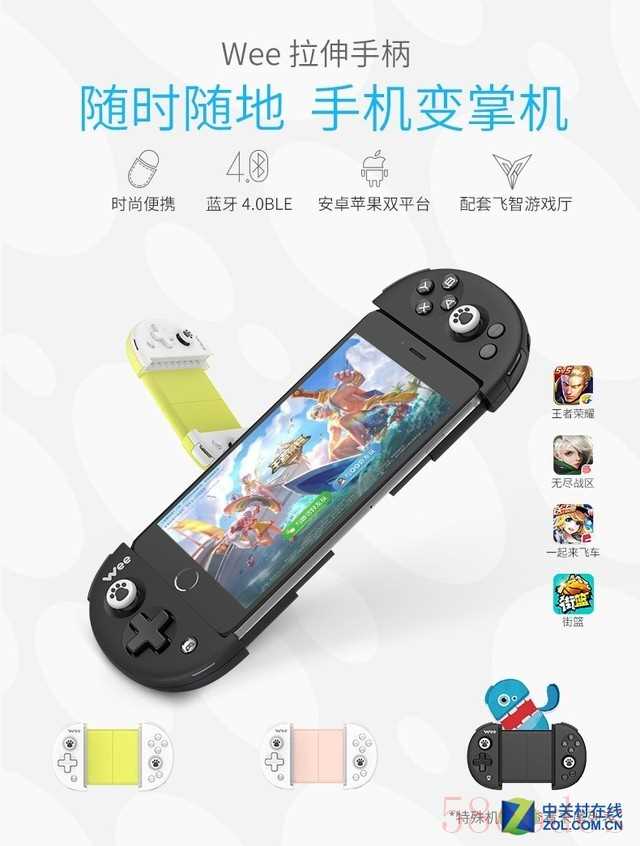 飞智wee拉伸手柄具有和飞智黑武士X8Pro一样配套的飞智游戏厅,热门手游同步适配手柄,安卓免ROOT畅玩上千种手游,iOS免越狱畅玩数十款云适配的热门游戏,下载即玩。