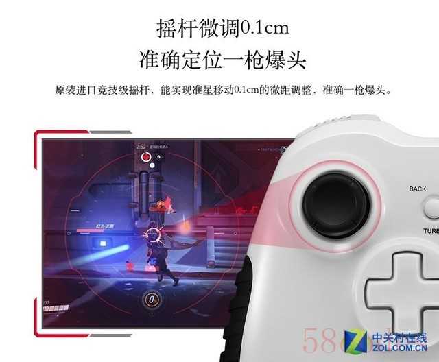 北通阿修罗2游戏手柄采用原装进口竞技级摇杆,能够实现准星移动0.1cm的微距调整,爆头更加准确。摇杆帽采用大于0.1mm的弧面设计,让拇指与摇杆紧密结合,使得操控更加稳定。扳机键采用进口竞技级线性电位器,256级输出,加速、漂移、刹车更加收放自如。