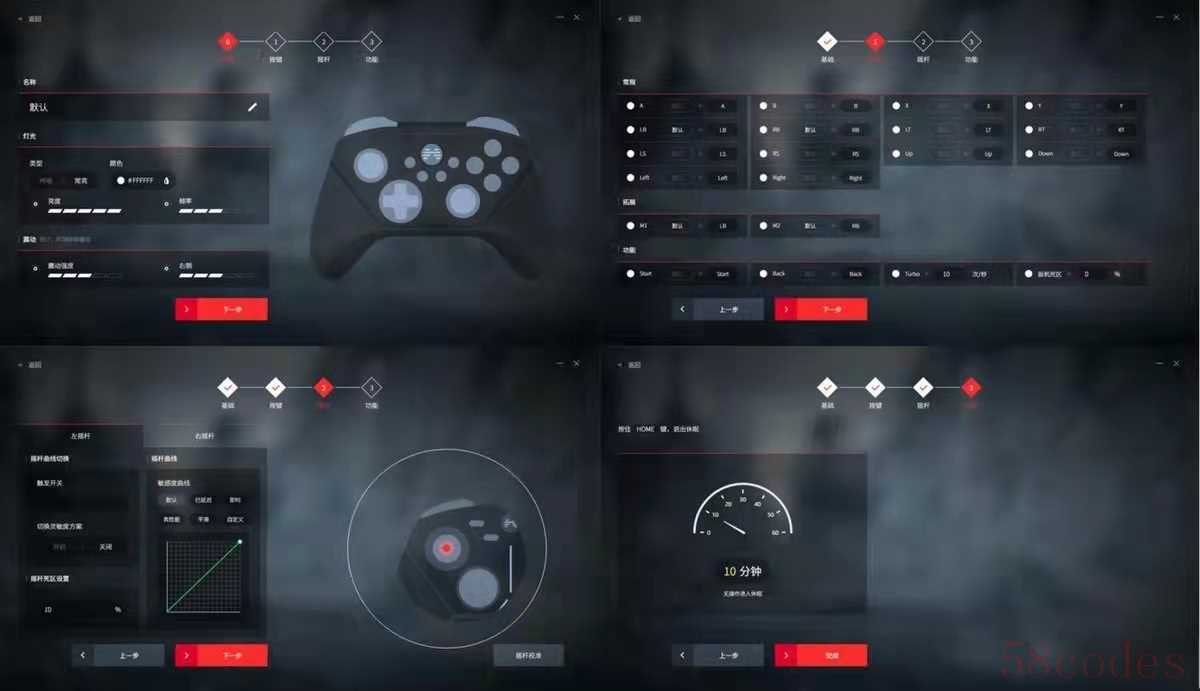 还有一点非常值得一提,那就是北通阿修罗2 Pro游戏手柄专门设计了一款软件,通过这个软件就可以对手柄进行一些自定义的设置,包括按键灵敏度、灯光、震感等等,以便于在游戏中拥有更好的体验。