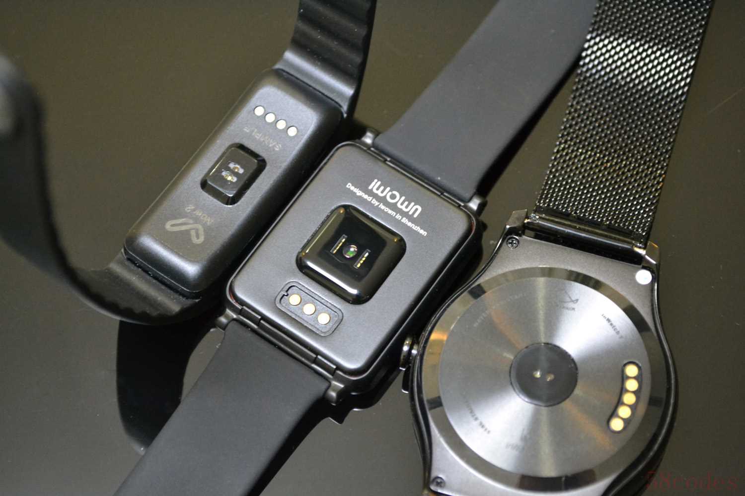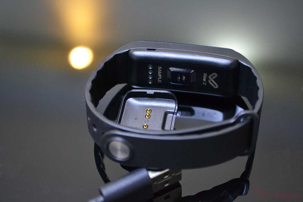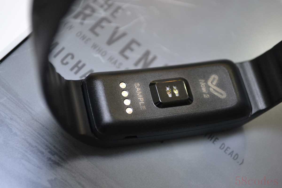 Now2背部凸起的部分就是光电式心率检测传感器了,心率检测采用的市面上常见的光电检测方式。同时背部还有同充电底座想连接的触点。