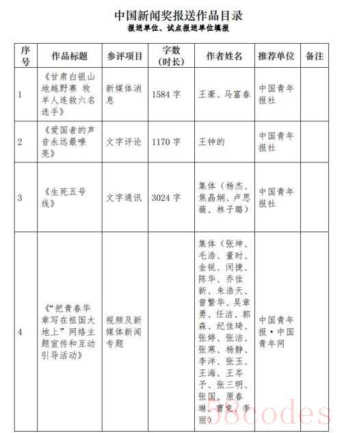 3. "作品列表:" 清晰列出被推荐参评的作品清单。清单一般会包含: