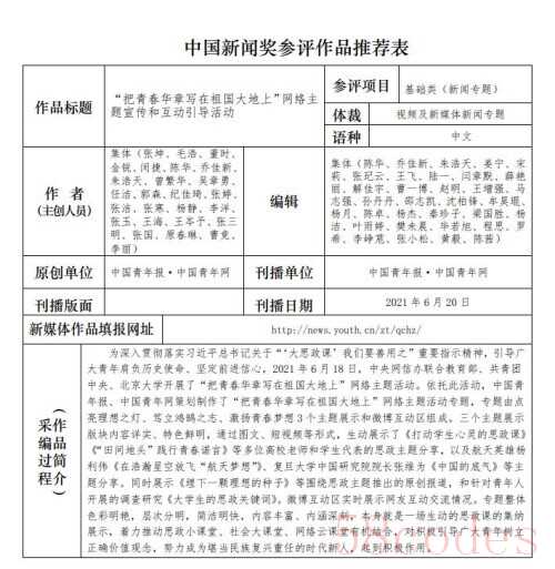 4. 《“把青春华章写在祖国大地上”网络主题宣传和互动引导活动》