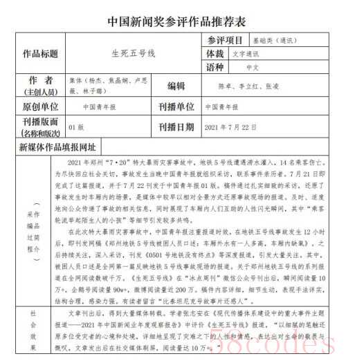 根据第三十二届中国新闻奖评选工作通知的有关要求,经向报社各部门单位征集、报社评委会研究推荐,报社领导同意,拟推荐以下作品参加第三十二届中国新闻奖评选。