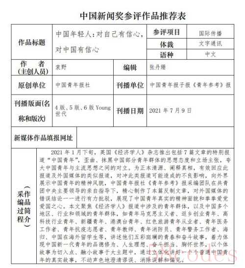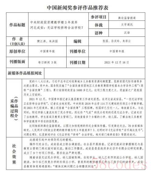 中国青年报社(China Youth Daily)是中央级媒体,一直是中国新闻界的重要力量,并且经常积极参与包括中国新闻奖在内的各项新闻评奖活动。