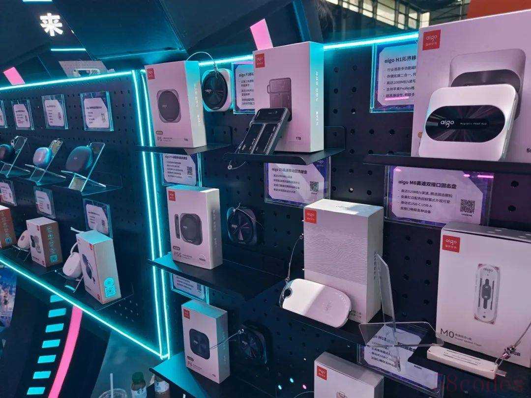 在存储设备展区,爱国者aigo疾速存储阵营的P6磁吸旗舰移动固态硬盘和H1拓界移动固态硬盘受到不少玩家的关注。