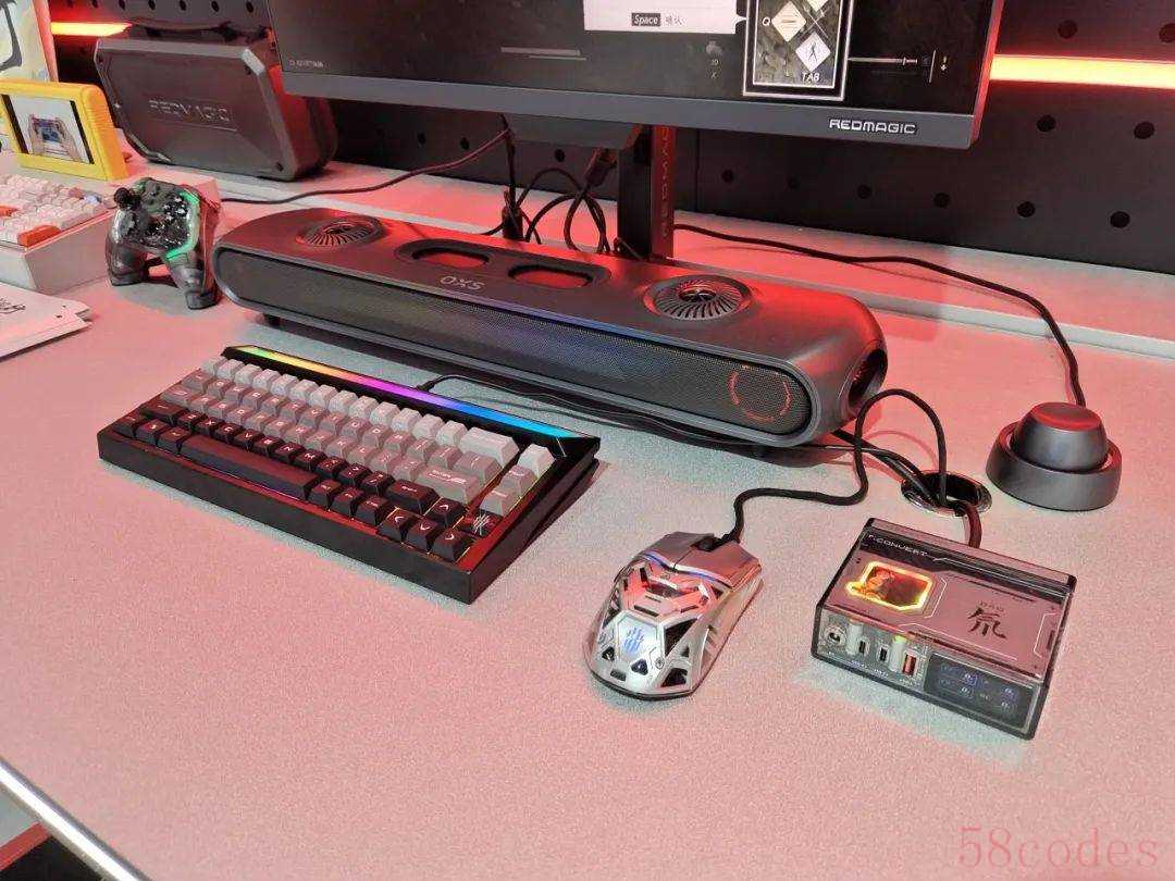 红魔冰刃磁轴键盘以6063全铝材质经CNC精雕打造,有星际战舰般的超未来主义风格,质感与耐用性都不错。它搭载的MAGIC SPEED TURBO魔速连接技术,实现了0.005mm高精度、0死区操作,480MHz主控芯片支持8000Hz有线回报率,响应延迟低至0.1ms,为电竞玩家带来了跟手的体验。另外,约1677万色RGB灯效可自由切换。