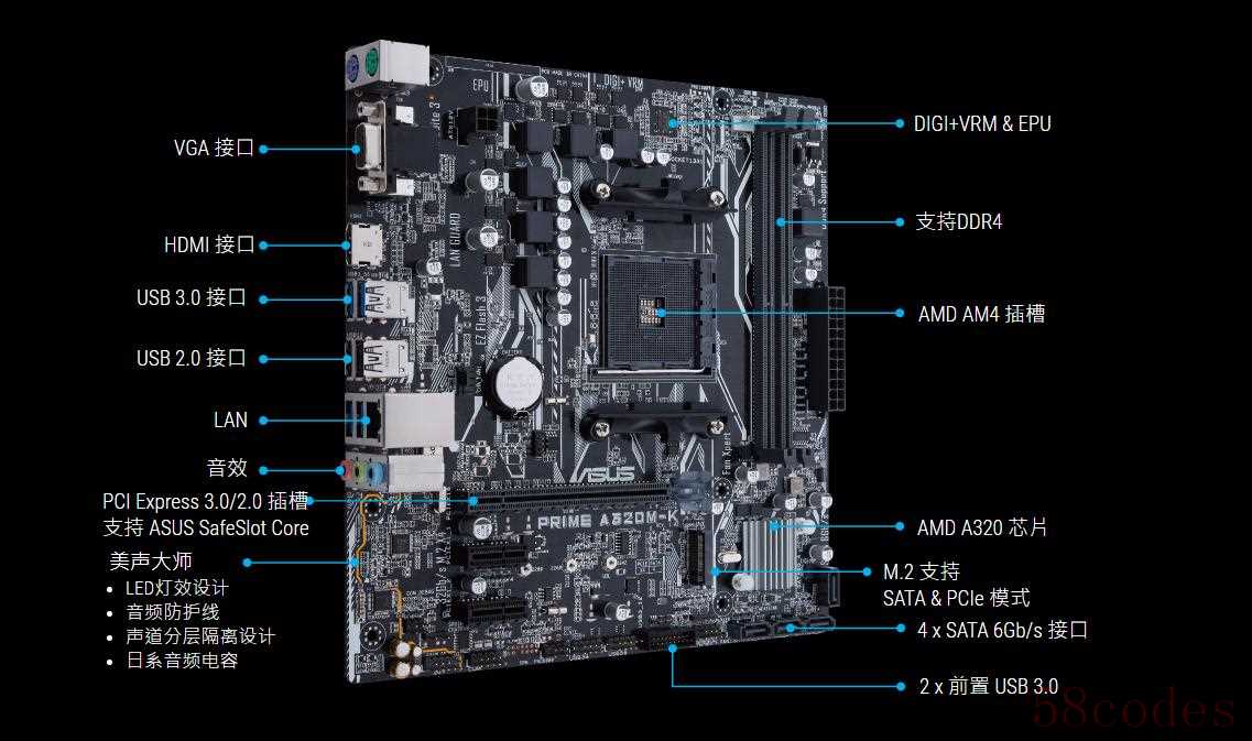 板子我们依旧使用华硕A320M-K,这款主板性价比非常高。