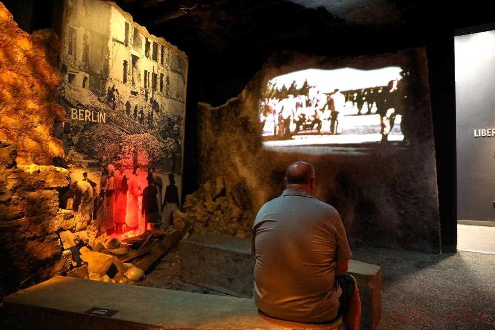 在“通往柏林之路”的欧洲战场展览中,循环播放伦敦、华沙、柏林等欧洲城市战前与战后对比图。展览这样描述欧洲:“沦为废墟的大陆。”展板说明写道:“战争折磨了欧洲6年,每一天都有将近2.5万名欧洲人被杀,其中有军人也有平民……战后,数以百万计的欧洲人沦为难民,欧洲政治图景被改变。”