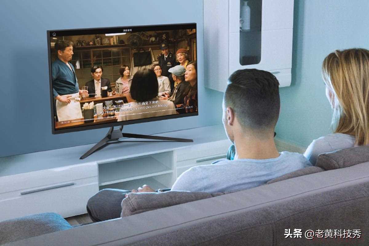 最后,这个显示器到家了不一定非要用自带脚架放桌子上,也可以壁挂,当电视遥控使用。