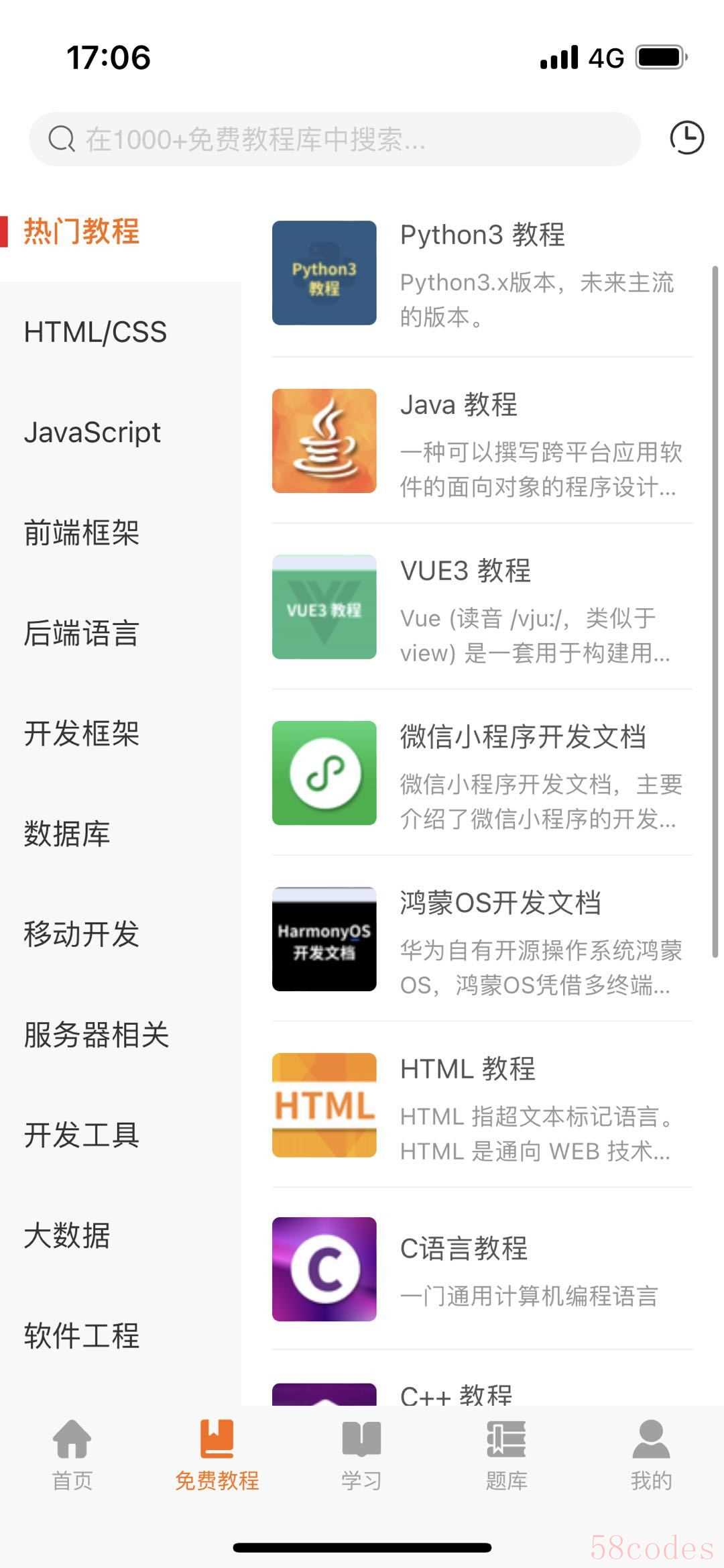 如果你想学习编程,在手机上就可以使用这个软件。它是一个编程资料库,提供了很多免费教程和实例,不仅仅限于前端Html,CSS,Js等,还有Python,PHP,C++等后端资料。对于入门编程的新手来说,是一个非常不错的学习软件。