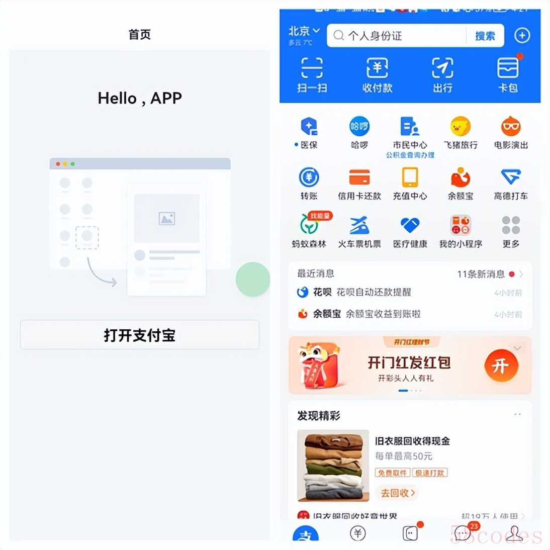通过调用api.openApp方法,点击按钮后,即可跳转到支付宝。