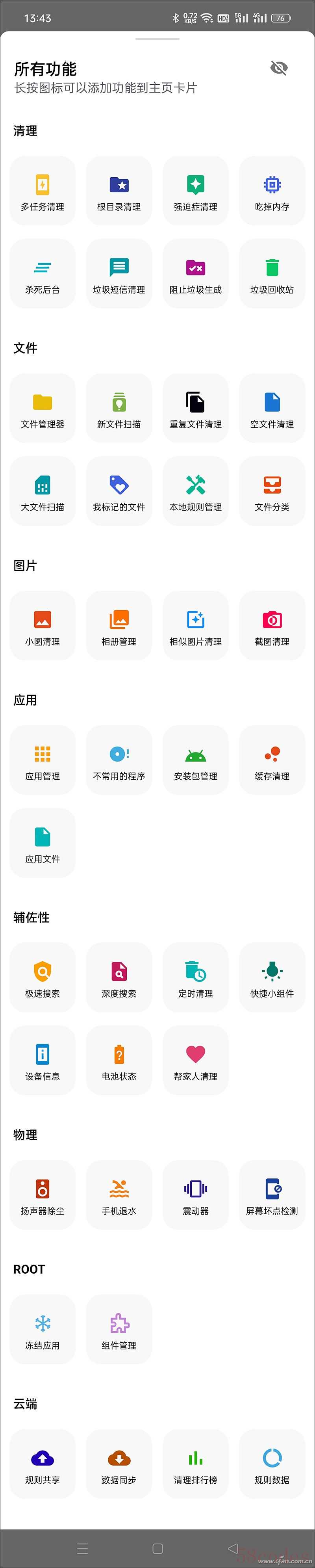 安卓清理君是一款是一款简洁、遵循MaterialDesign的系统清理软件,所有垃圾规则都是云端同步,由用户上传审核,保证实时更新,提供了超过40种功能,覆盖日常清理、系统优化、提升手机体验的方方面面,首次运行需要赋予其文件管理权限、读取应用列表等权限,Android 11或以上系统还需允许其访问data目录。