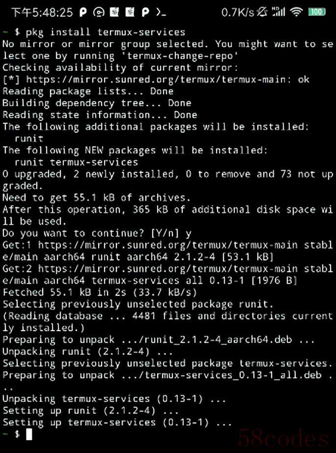 接下来,安装termux服务(注意:安装完成termux后,关闭termux,然后重新进入termux):