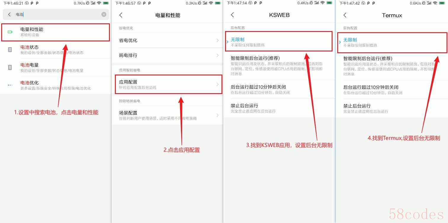 这样,即可保证KSWEB和Termux应用后台无限制运行啦!