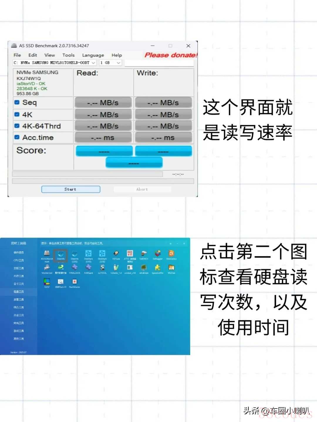 - 用“硬盘工具”,测试读写速率。数值太低可能是二手硬盘。同样拍照记录数据。