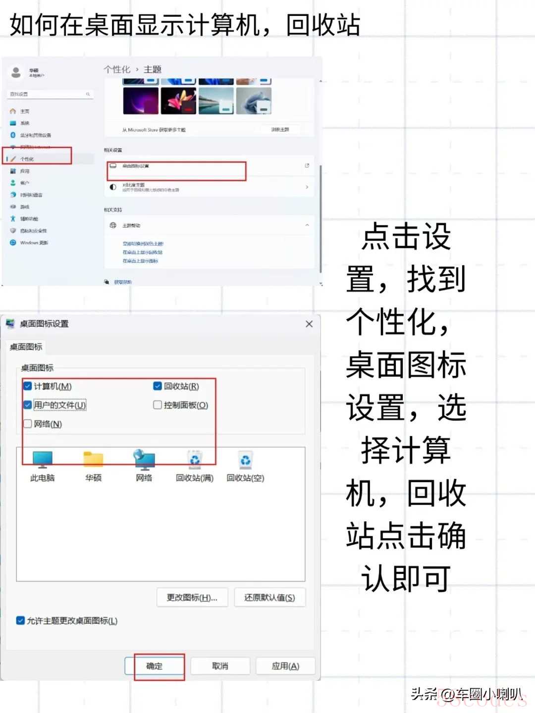 第四步:进系统后,先把桌面图标“我的电脑”调出来(右键桌面个性化设置)。提前准备一个U盘,里面拷贝好图吧工具箱(免费的工具包,网上搜名字就行)。没U盘也行,如果你是安卓手机,用数据线连电脑当U盘用,但iPhone不行,iOS的限制没法操作。安装图吧工具箱后,按顺序一步步检验: