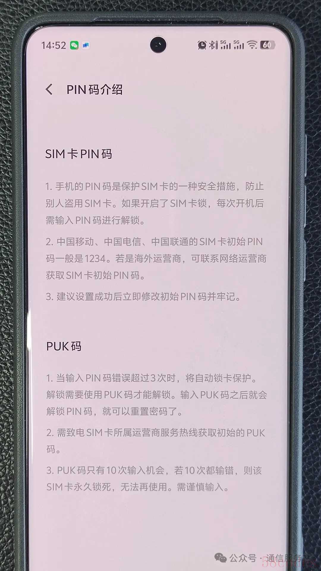 - PUK码保护:当PIN码连续三次输入错误时,SIM卡会被锁定。此时需要使用PUK码解锁。PUK码通常随SIM卡一起提供(就是办卡时候在SIM卡套上的那个码),个人无法变更。如果PUK码连续十次输入错误,SIM卡可能会被永久锁定。