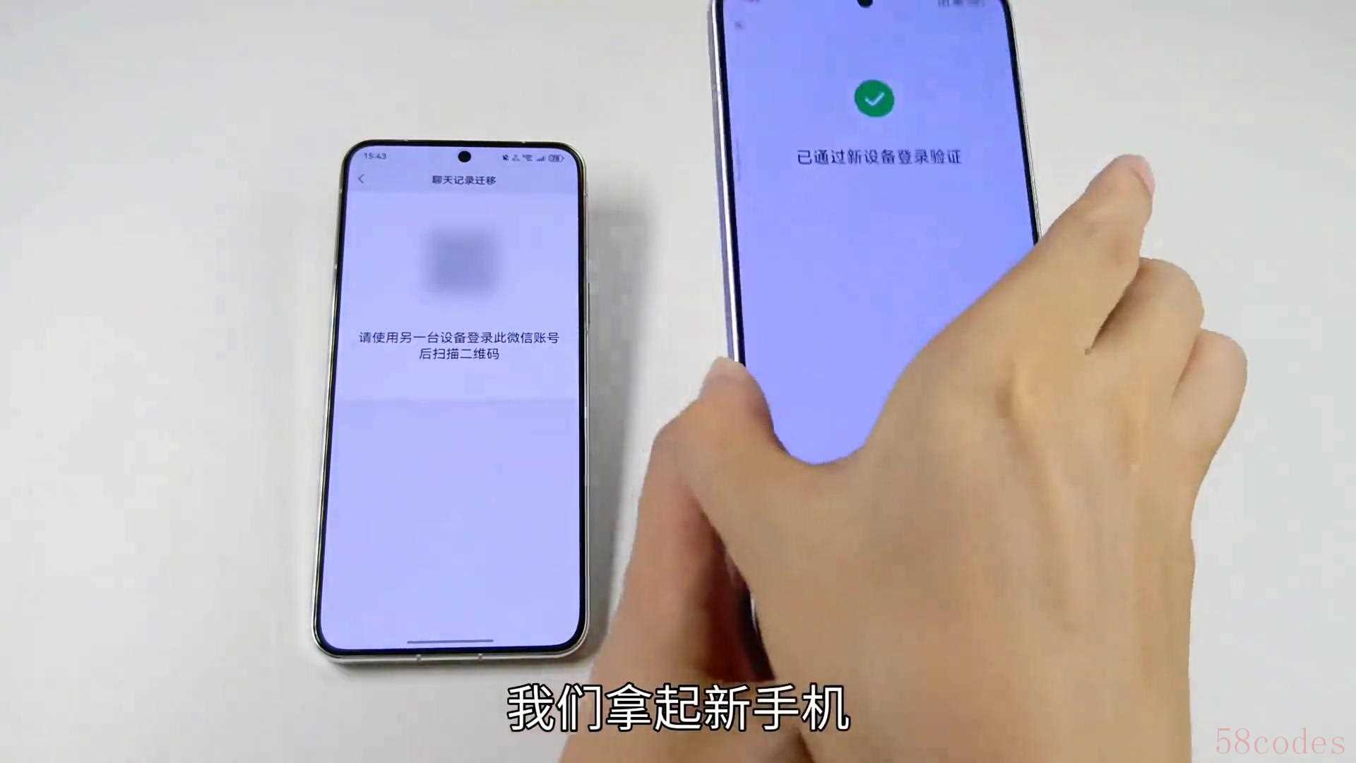 "6. 新手机会验证迁移码,验证通过后,即可开始迁移聊天记录等信息。"