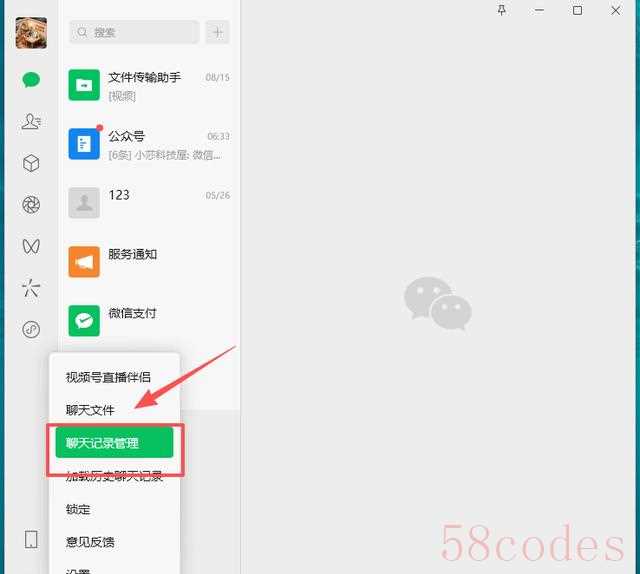 电脑端微信左下角三条杠→聊天记录备份与恢复→开始备份。