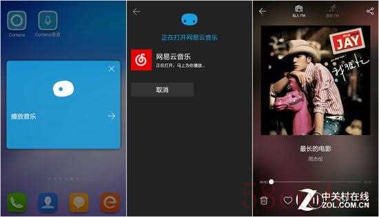 本次小娜与网易云音乐的合作先期登陆Win10 PC和Android手机平台,由于目前网易云音乐还未发布Win10 Mobile版,暂时不清楚具体实现方式。当用户想要通过微软小娜播放自己青睐的歌曲时,只需对她说句话,例如:“你好小娜,播放周杰伦的《最长的电影》”。微软小娜接收到用户语音指令后,即会打开网易云音乐并播放该歌曲。
