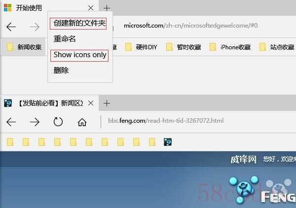 Microsoft Edge 浏览器收藏夹栏改进:在该版本中,如果你开启了 Edge 浏览器的收藏栏,那么只要右键收藏栏就能够发现两个新的小功能。第一是可以选择是否显示已收藏网站的图标,关闭则以名称显示。第二个功能是支持在收藏栏创建新的文件夹,管理收藏的网站更方便了。