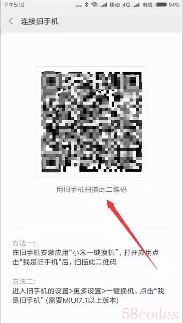 接着,手机上会出现一个二维码,用旧手机扫描该二维码,就可以自动导入数据了。