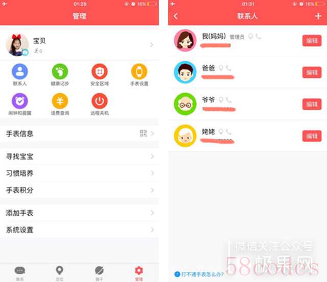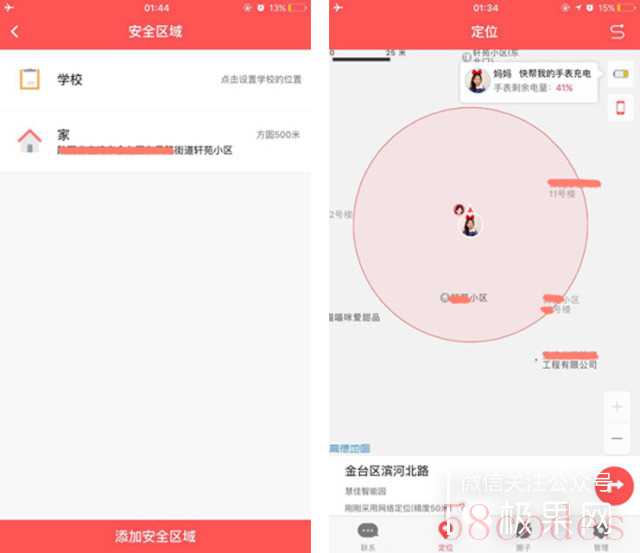 管理界面家长帮助设置宝贝手机的联系人,闹钟提醒,还可以远程关机!对孩子日常活动的范围还可以设定安全区域,一旦孩子离开安全区,手机App就会立即收到SOS警报及孩子当前的位置。