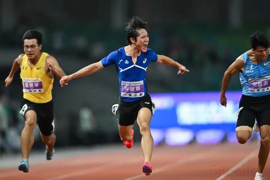 最终,邓信锐不仅如愿拿到了那场比赛的冠军,而且跑出了10秒06的个人最好成绩。在赢得通向东京世锦赛的重要积分时,邓信锐也成为继苏炳添、谢震业和张培萌之后,并列第四快的中国百米飞人。