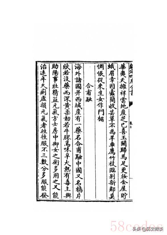 明清时期在海禁下进行走私的商人们,就会捎带一点鸦片进来给医馆治病,或者给贵族当春药服用。明朝徐伯龄在他的《蟫精隽》中有记载说:“鸦片,主兴助阳事,壮精益元气。方士房中御女之术,多用之。又能治逺年乆痢,虚损元气者,往往服不三数分。多服,能发人疔肿、痈疽、恶疮,并一应热疾。其价与黄金等……”