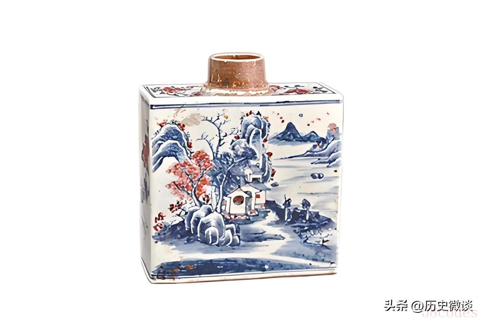 乾隆时期青花釉里红山水人物紋茶叶瓶