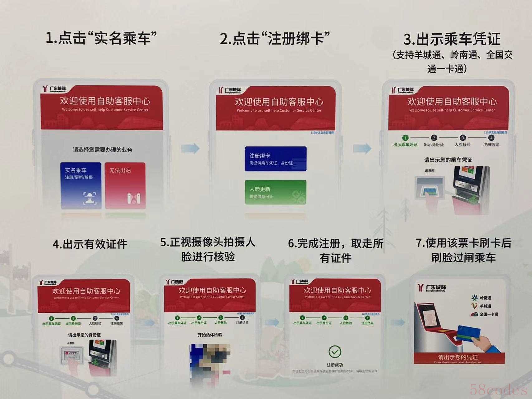 如果已经绑定过一次身份证:同一张卡在完成一次认证后,都不需再次认证了。不需预约、不需购票,直接刷卡并人脸识别,就能过闸进站乘车。特别需要提醒的是,此前实名过的羊城通卡首次搭乘城际,仍需要到城际站内的设备对卡进行绑定及身份验证。