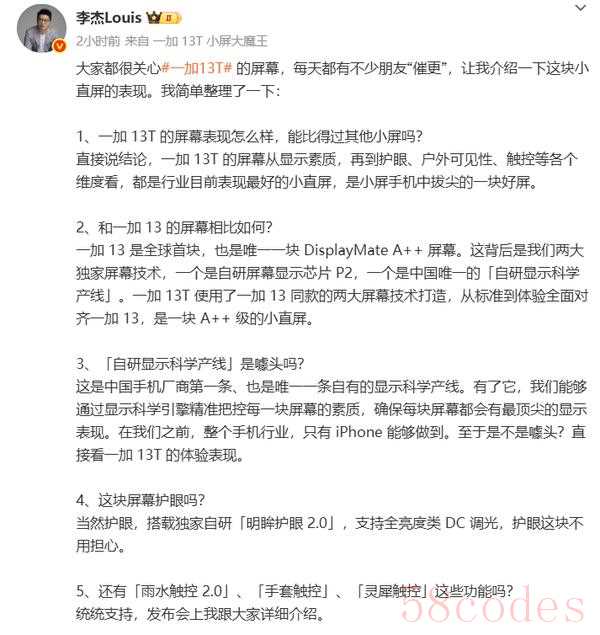 总之,一加13T不仅继承了一加13的优秀屏幕基因,还在护眼和触控等方面进行了多项优化,为用户提供了更加舒适和便捷的使用体验。