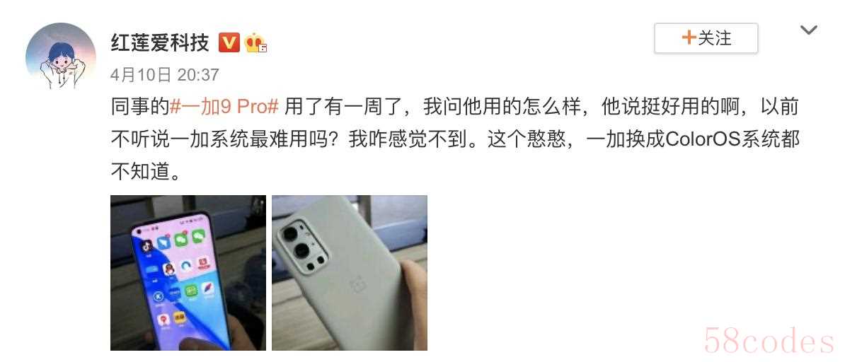除了高流畅度以外,ColorOS for OnePlus系统也让一加9系列成为一部“好用”的旗舰。在数码博主@红莲爱科技 的分享中,表示自己的同事在用了一加9 Pro一周时间后,认为ColorOS for OnePlus系统“挺好用的啊,以前不听说一加系统最难用吗?我咋感觉不到”。看来,这回一加换成ColorOS系统还算是成功的,即便是第一次用一加手机的用户,也着实能感受到手机在系统方面的好用程度,在功能与流畅度方面的