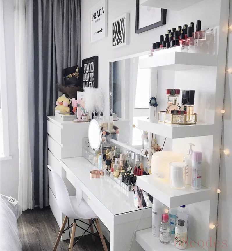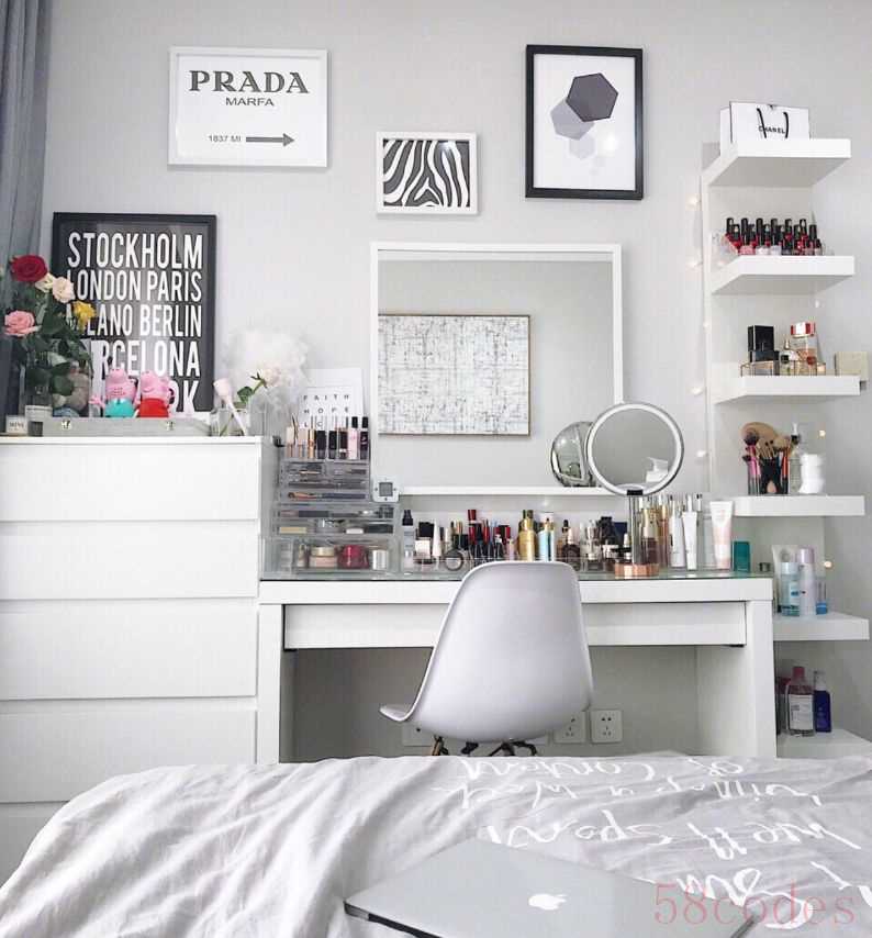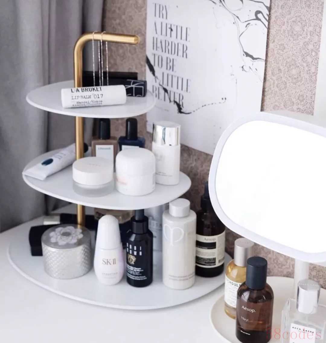 或是用宜家的托盘来做化妆品收纳,延伸的手柄还能用来悬挂首饰,随便摆一摆都是精致本人